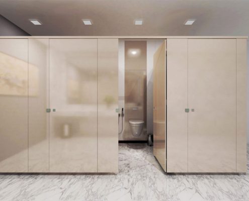 For prestigious hotel and luxury washrooms, introducing Vizua Washroom Cubicle System in two exclusive finishes – Metal laminate and Rehau Rauvisio Brilliant High Gloss/Matt laminate. With high-end finishes and functionality, Vizua model meets all design challenges that come with creating luxurious and well planned washroom.