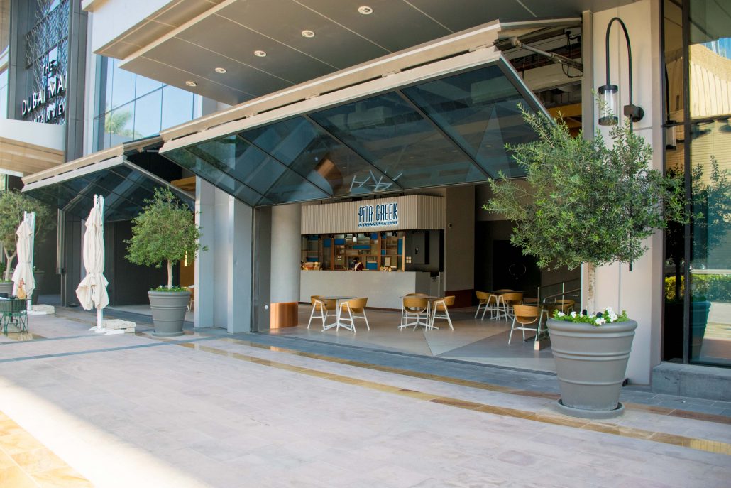 The client and the project team wanted to incorporate bi-fold hydraulic doors for the retail space with weather resistant glass finishes. The latter feature was to provide much-needed sunshade during the scorching summers months of the region. During the completion of the structural works of the project, the client and contractor were accessing options available for bi-fold doors. However, none of them offered the hydraulic feature with the bi-fold door system which was a specific architectural requirement. The hydraulic feature in the Crown bi-fold door system made it a front runner for this project.