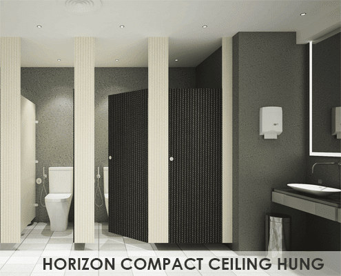 As with all our cubicles, Horizon Cubicle system is manufactured with longevity and durability in mind. The high compact laminate used in the manufacturing of this product is an antimicrobial and nonporous material making it resistant to the growth of mold and mildew. Sturdy and strong hanger rods are securely embedded in the ceiling providing an anti-swinging motion for the doors. Each cubicle comes with S.S hinges, S.S indicator lock set, S.S doorknob, and S.S coat hook. Complimenting the clean look, there is no visible fixing. Durable, impact and moisture resistant, all hardware including fixing brackets and screws are stainless steel with a satin finish.