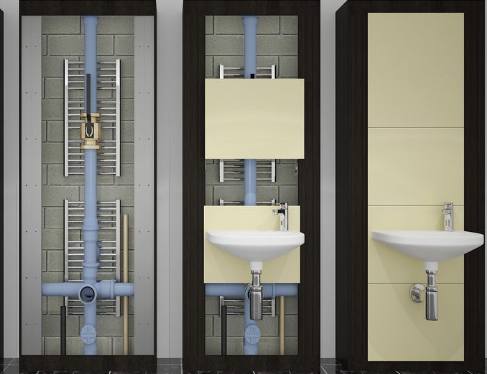Our integrated panel system provides a more efficient and cost-effective plumbing work fittings with a seamless wall finish with no unsightly protrusions or service fittings.