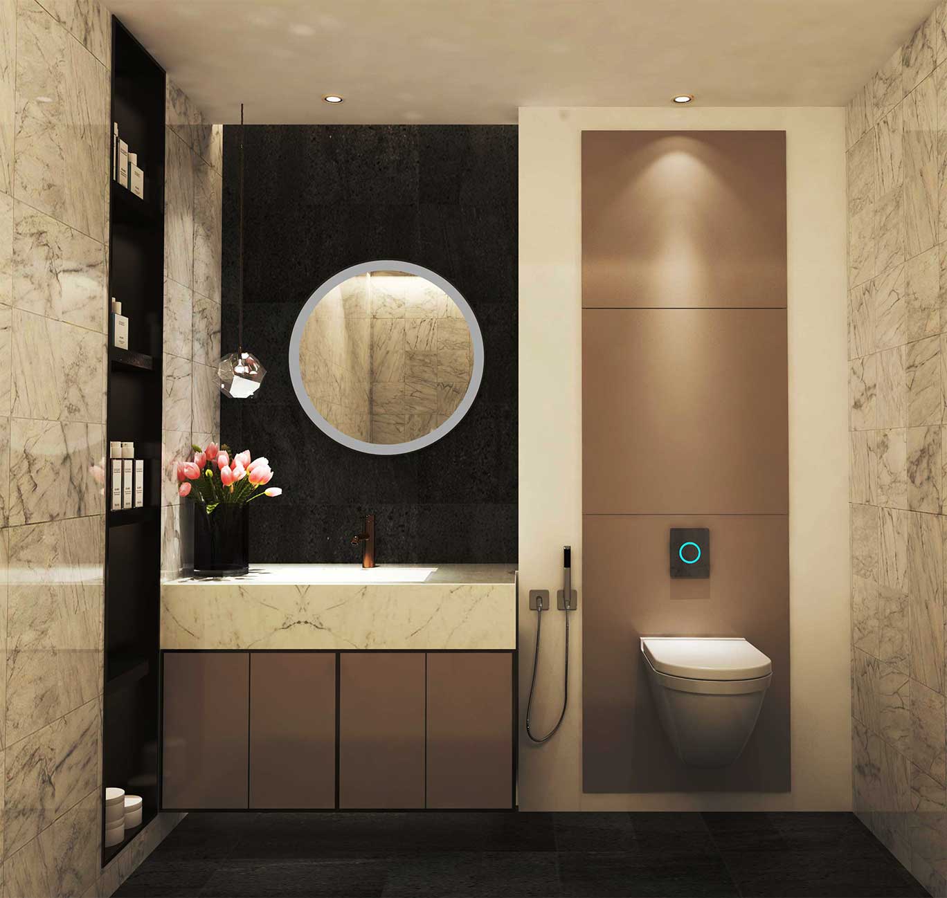 The sturdy panels can be designed in metal laminates or high gloss/matte in a versatile range of colors creating a seamless wall finish. An efficient and cost-effective plumbing work fitting without any unsightly protrusions or service fittings. Site ready assembly of components reduce installation time and site interruption.