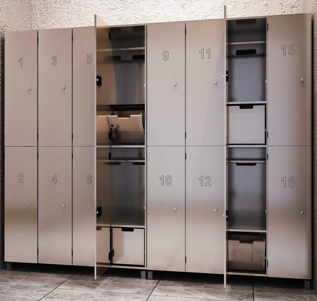 Pick between a high gloss/matte finish or a metal laminate to create a luxurious locker/change room. Its tough durable finish is scratch and chemical resistant making it ideal for high traffic wet or dry areas including – luxury spas, health clubs and professional sports teams’ locker rooms.